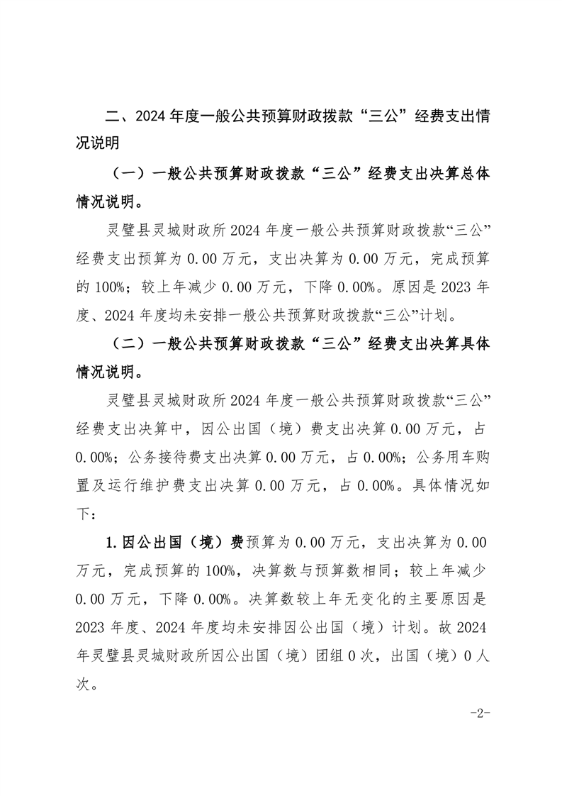 灵璧县灵城财政所2024年度一般公共预算财政拨款“三公”经费支出决算