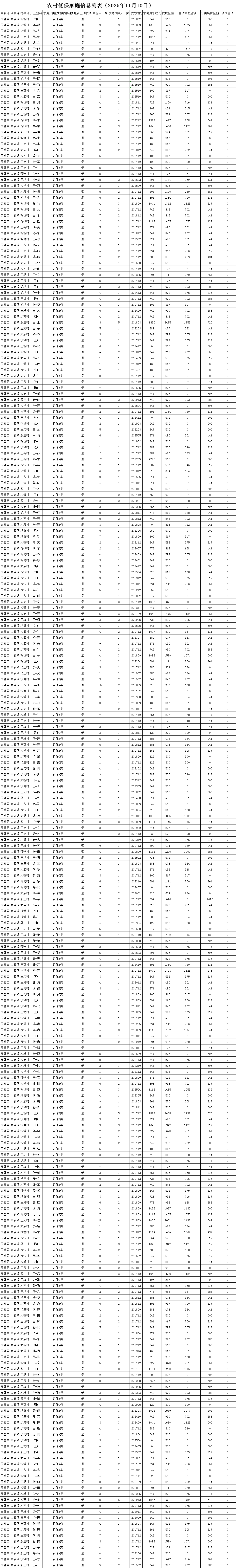 大庙镇2025年11月份农村居民最低生活保障资金分配表