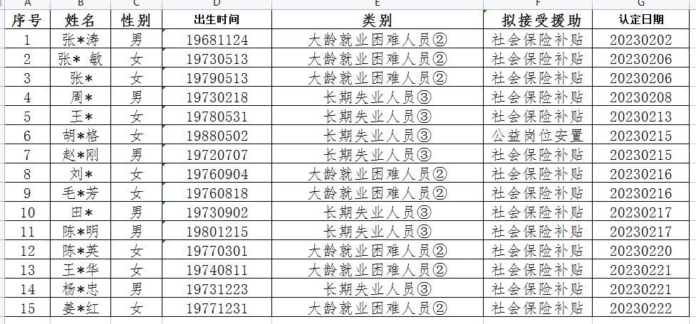灵璧县2023年2月就业(困难)援助认定人员名单公示