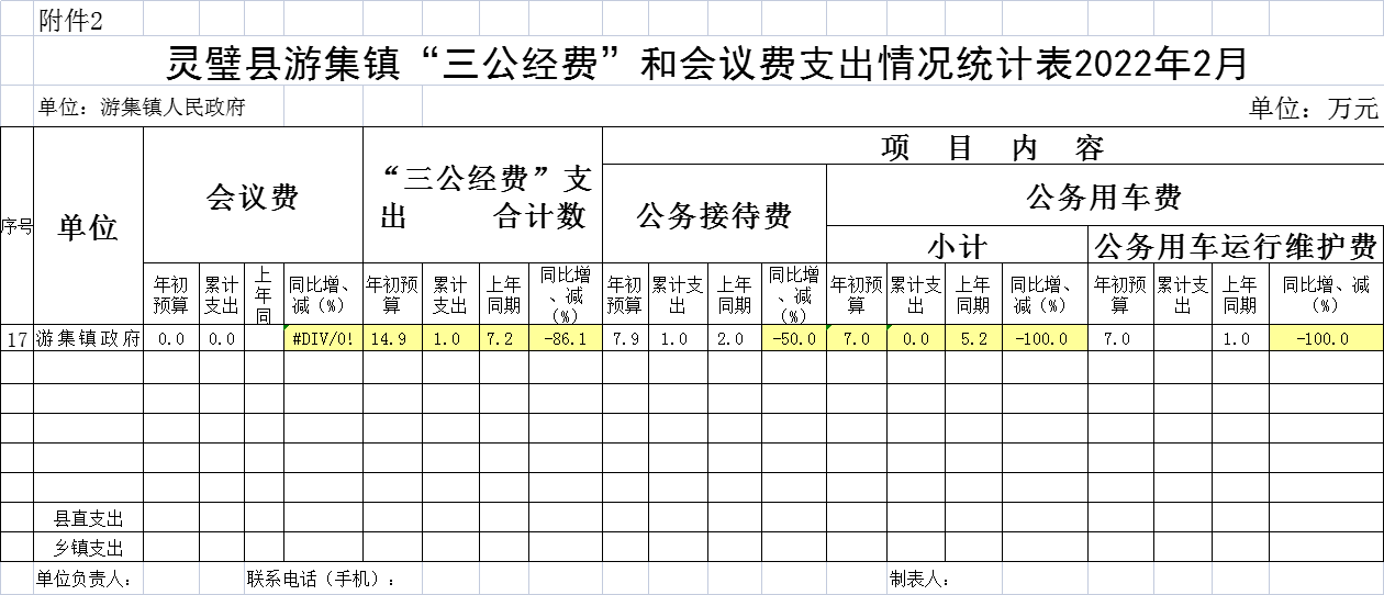 灵璧县游集镇2022年2月“三公经费”和会议费支出情况统计表