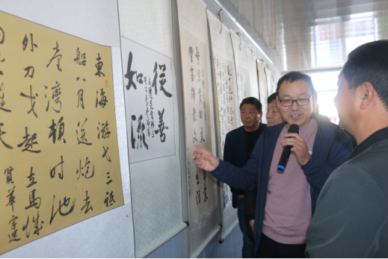 活动开始,朱集乡党委书记王计洲致开幕词,表达了节日的问候和衷心的祝愿,希望能够借助丰富多彩的活动形式,营造出全乡浓浓的文化氛围和传承优良传统文化的的决心。此次书画展在书画名家王永、王广振、王冉、张海峰、尹婷婷等对于画作的点评指点中进入高潮,每一位作者站在自己的书面作品前虚心受教,也让我们这些参与者学习了很多书写、绘画的技巧。