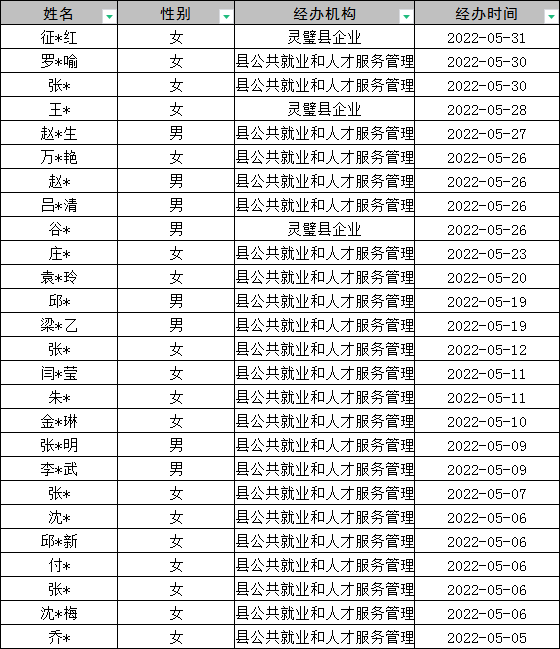 灵璧县2022年5月失业登记统计表