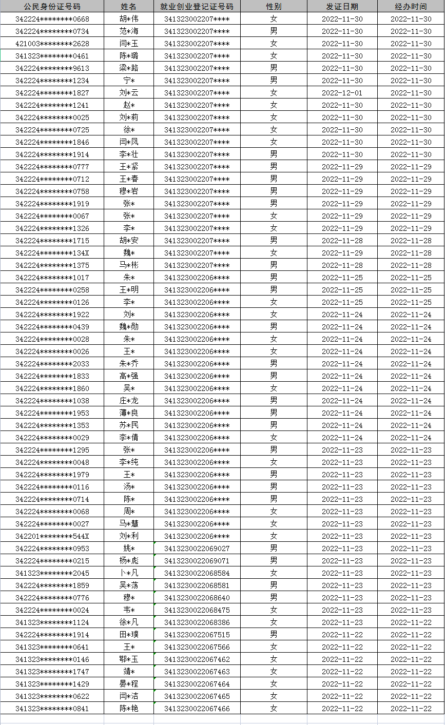 灵璧县2022年11月份就业失业(就业创业)登记证办理统计表