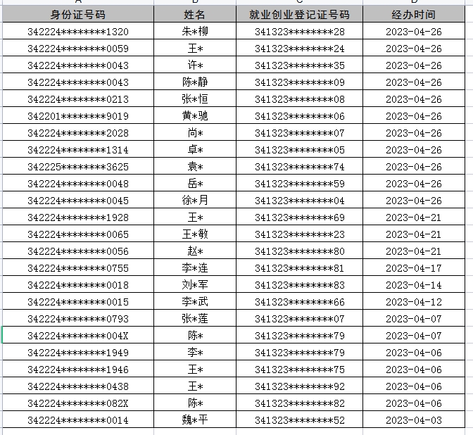 灵璧县2023年4月失业登记统计表