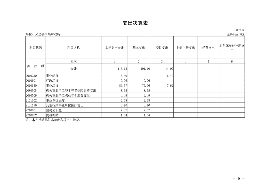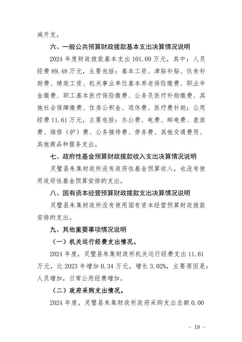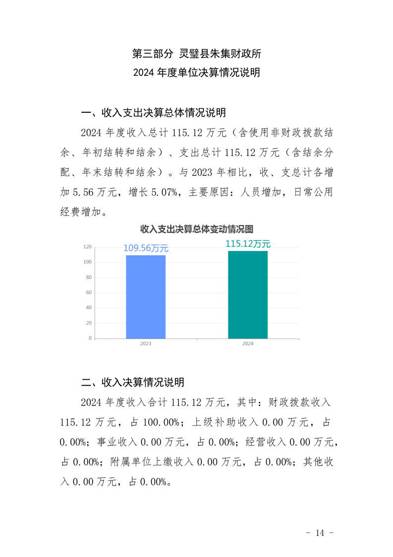 灵璧县朱集财政所2024年度单位决算