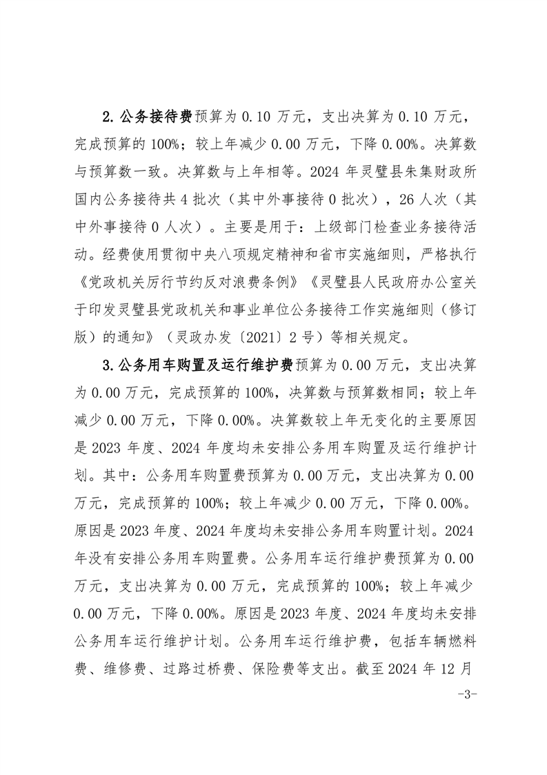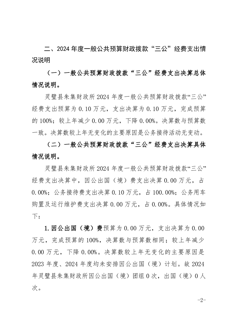 灵璧县朱集财政所2024年度一般公共预算财政拨款“三公”经费支出决算