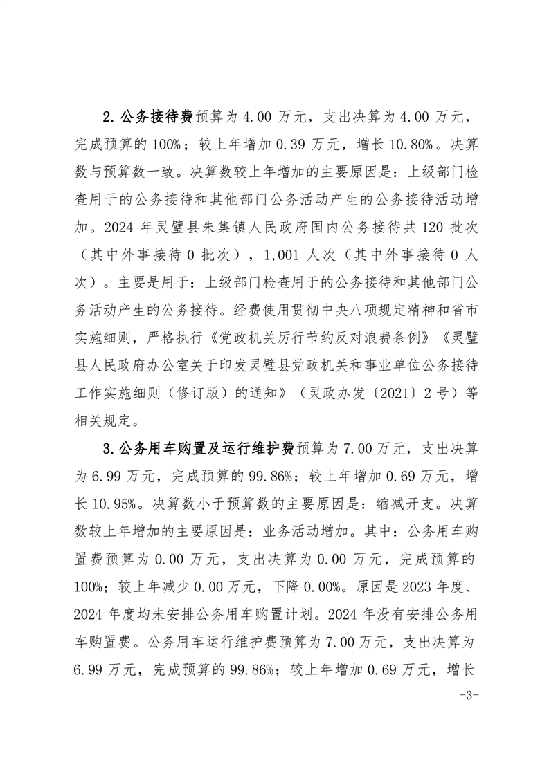 灵璧县朱集镇人民政府2024年度一般公共预算财政拨款“三公”经费支出决算