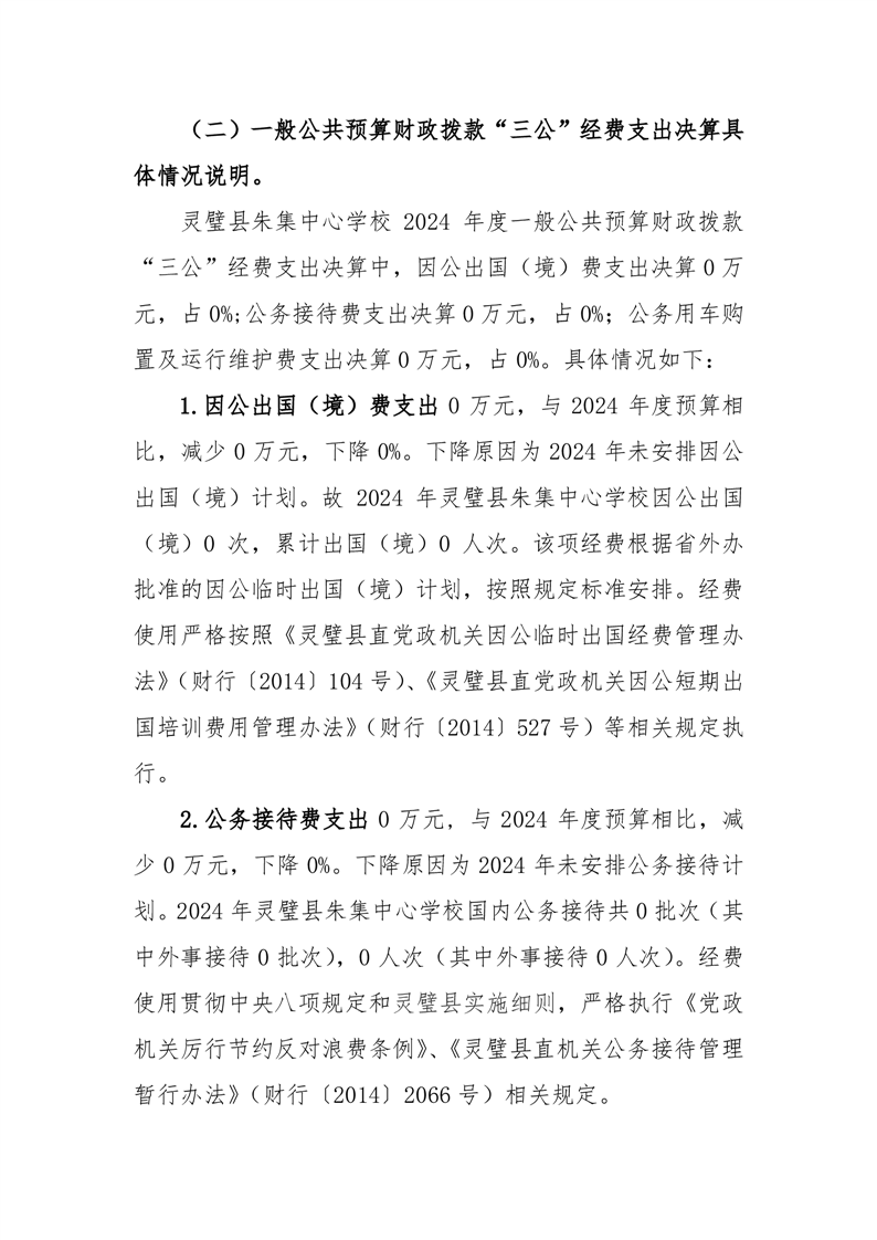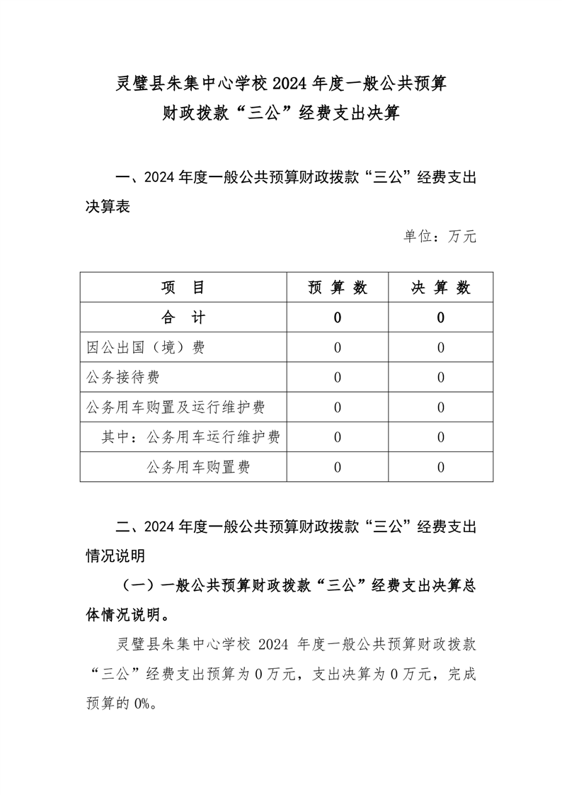 灵璧县朱集中心学校2024年度一般公共预算财政拨款“三公”经费支出决算