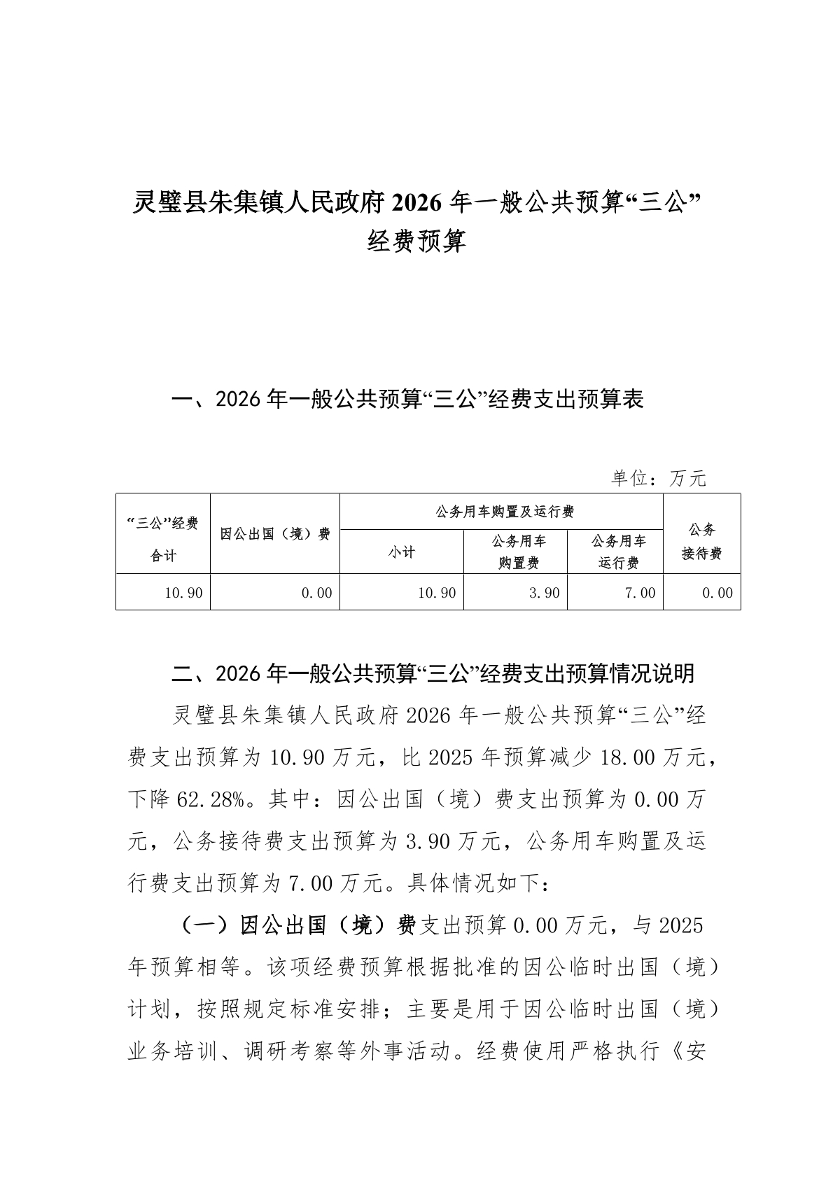 灵璧县朱集镇人民政府2026年一般公共预算“三公”经费预算