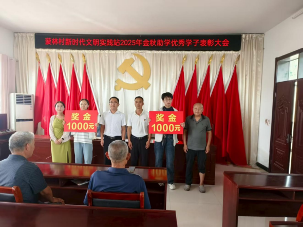 近日,灵璧县尹集镇菠林村在新时代文明实践站举办2025年度优秀学子表彰大会,对今年考取本科及以上高等院校的学生进行奖励。