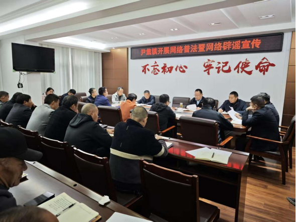 10月20日,灵璧县尹集镇组织开展网络普法暨网络辟谣宣传活动,镇各机关干部、村书记及工作人员齐聚镇会议室,共同学习网络相关法律法规与辟谣知识。