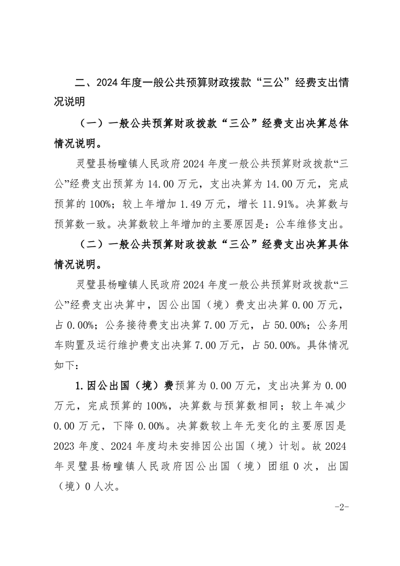 灵璧县杨疃镇人民政府2024年度一般公共预算财政拨款“三公”经费支出决算