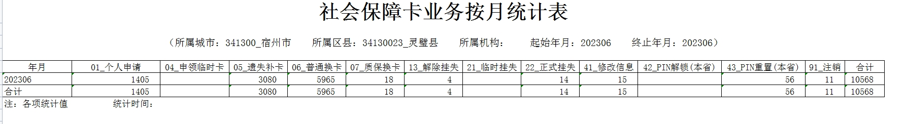 灵璧县2023年6月份社会保障卡服务管理情况统计表