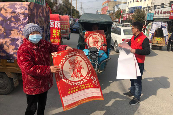 年画以“钟馗送福”为主要内容,由青年之家团员青年在黄湾街免费发放到广大居民手中。活动中,团员青年还与居民亲切交谈,收集他们对镇、村的意见和建议,提醒居民注意防寒保暖,做好疫情防护。