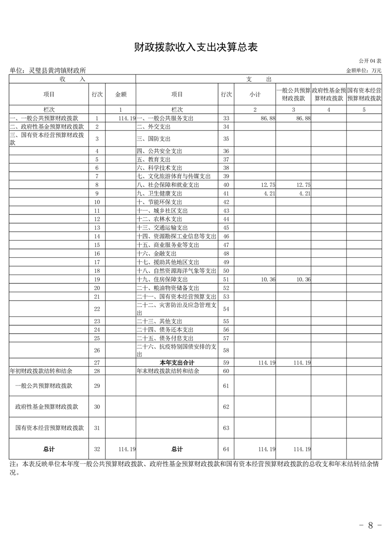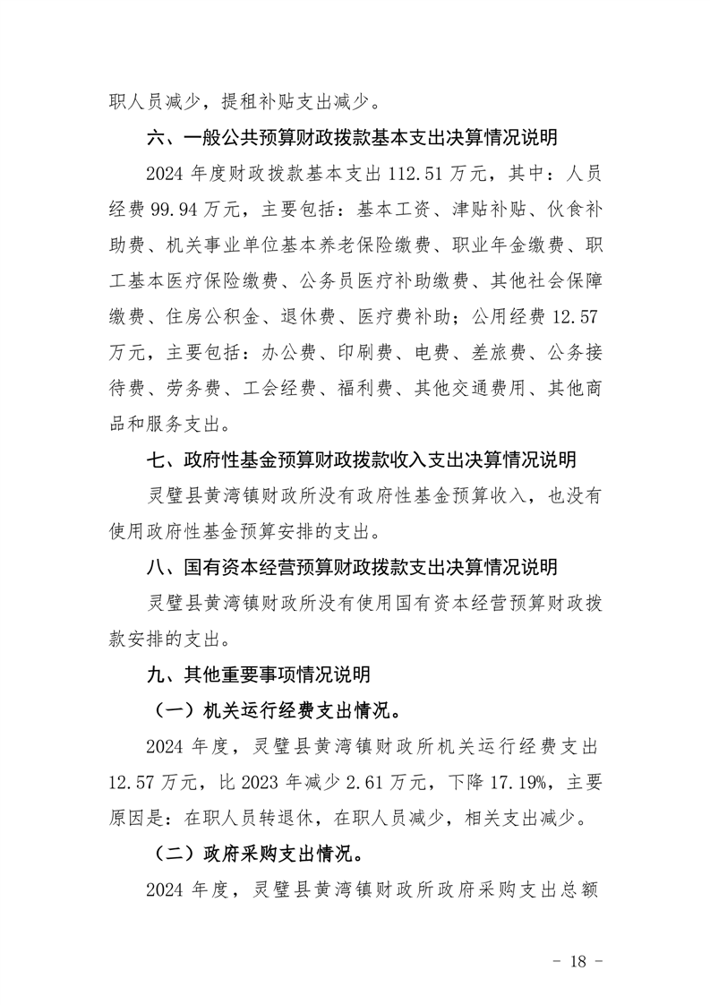 灵璧县黄湾镇财政所 2024 年度单位决算
