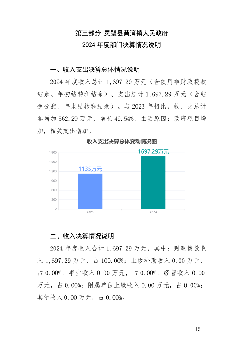 灵璧县黄湾镇人民政府 2024 年度部门决算