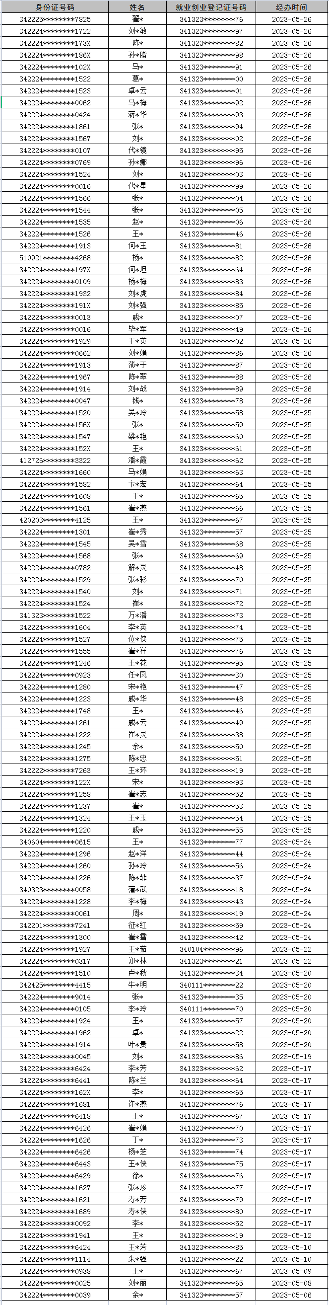 灵璧县2023年5月失业登记统计表