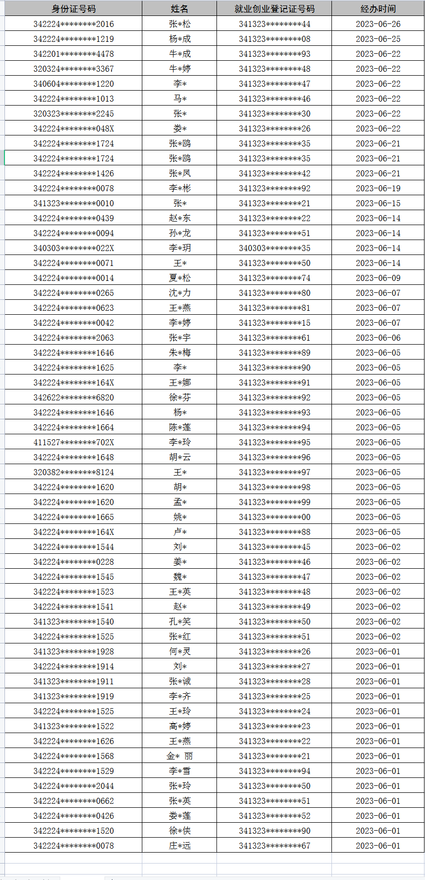 灵璧县2023年6月失业登记统计表