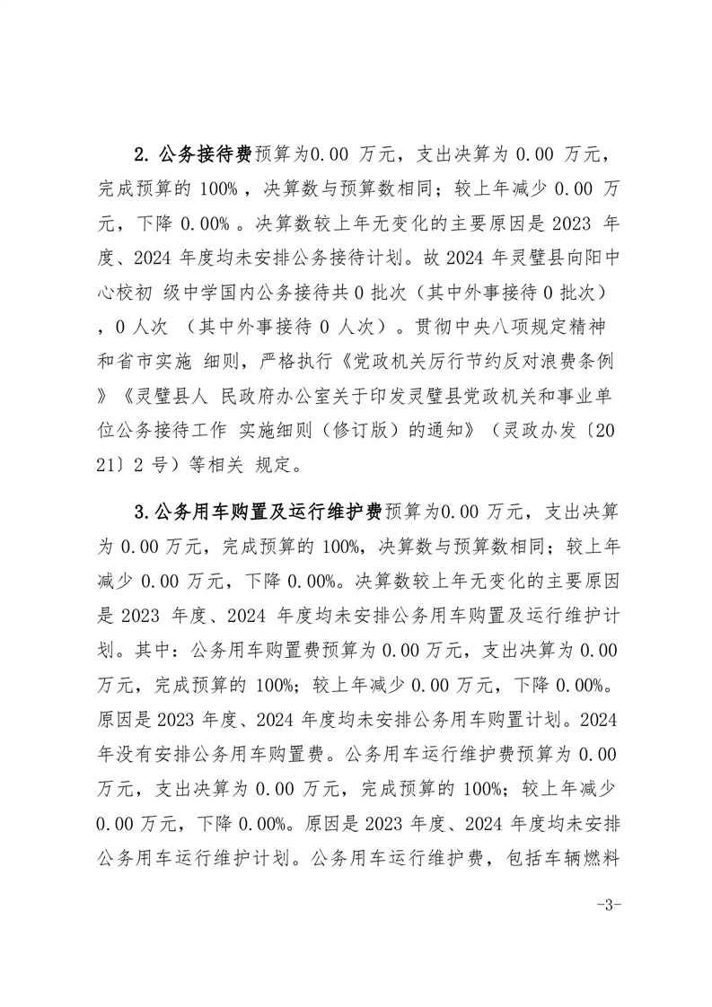 灵璧县向阳中心学校2024年一般公共预算财政拨款”三公“经费支出决算