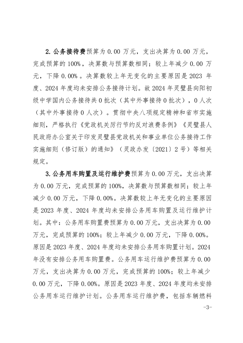 灵璧县向阳初级中学2024年一般公共预算财政拨款”三公“经费支出预算