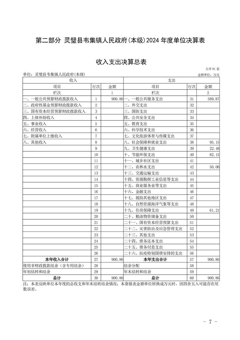 灵璧县韦集镇人民政府(本级)2024年度单位决算