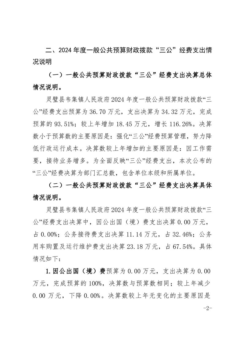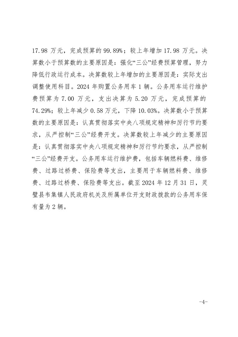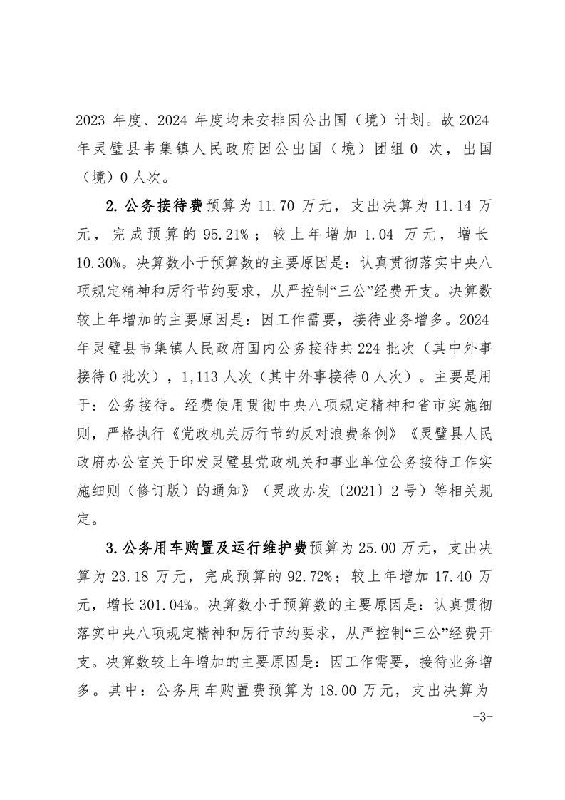 灵璧县韦集镇人民政府2024年度一般公共预算财政拨款“三公”经费支出决算