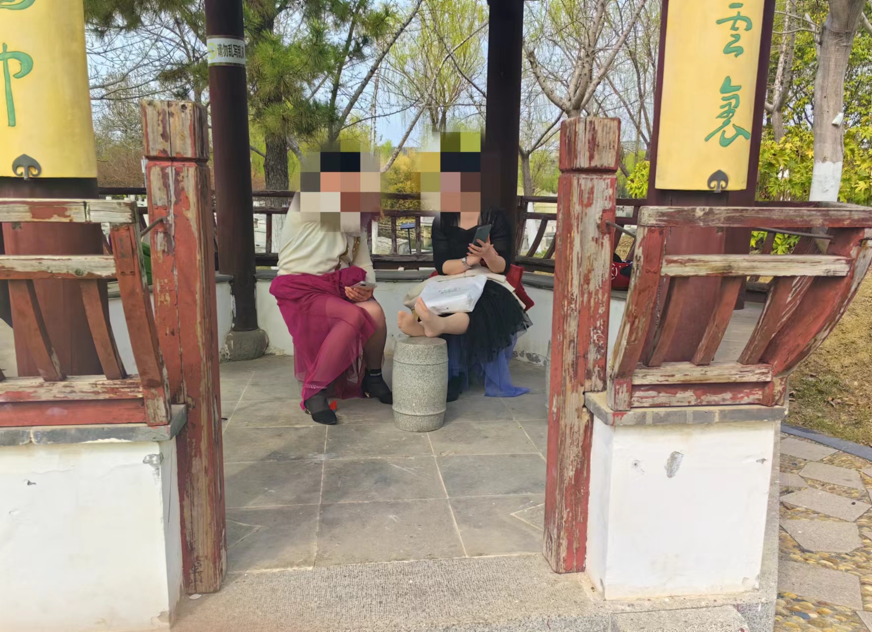 某游客在休憩凉亭赤脚乘凉的不文明现象