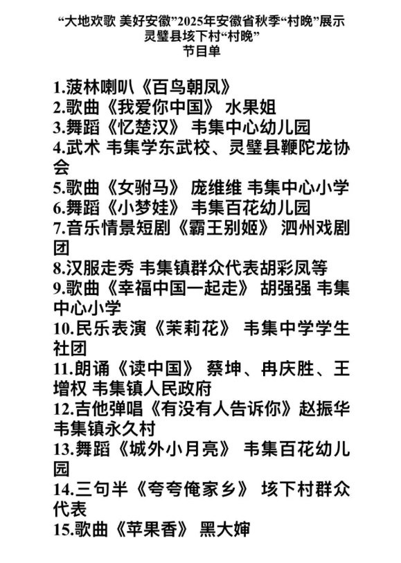 【活动预告】2025年安徽省秋季“村晚”展示灵璧县垓下村“村晚”