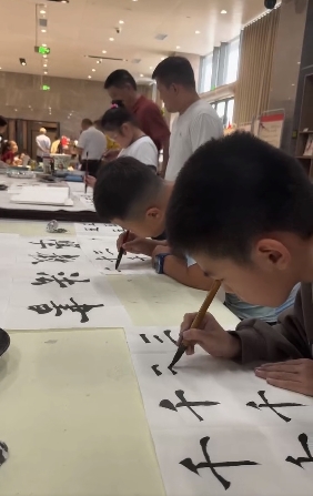 活动伊始,张金华老师以渊博的学识,深入浅出地讲解了书法的历史渊源与演变脉络。让学员们直观地感受到了书法的魅力与技巧的精妙。学员们目不转睛地观看,不时发出惊叹与赞叹之声,现场气氛热烈而庄重。在老师的鼓励与纠正下,他们逐渐掌握了基本的运笔方法,感受到了书写汉字的乐趣与成就感。