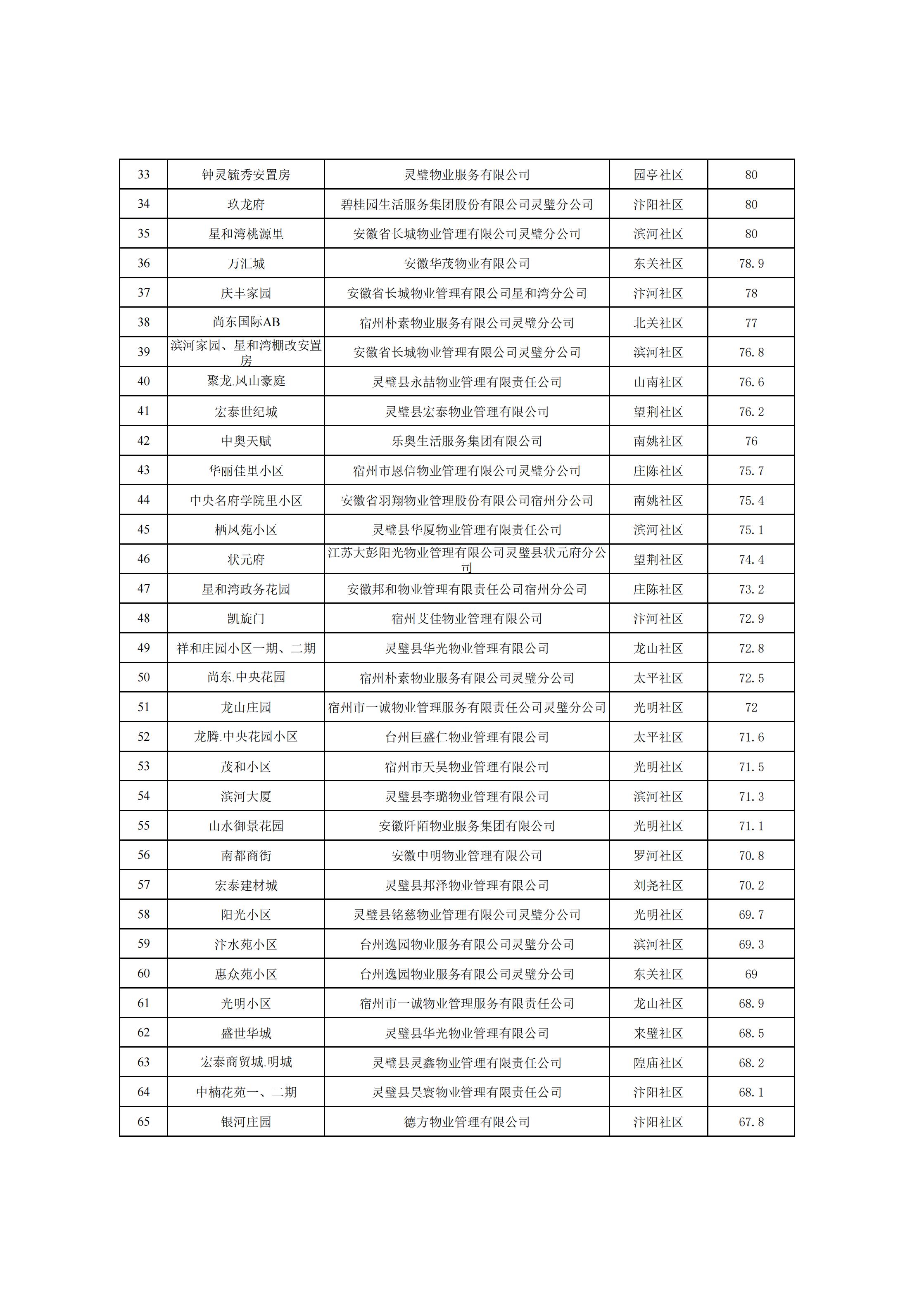 为进一步规范物业服务行为,提高物业服务水平,根据宿州市人民政府办公室《关于进一步加强宿州市物业管理服务工作的意见》(宿政办秘〔2021〕16号)精神,按照《宿州市物业服务考核办法(试行)》要求,开展辖区住宅小区2025年第三季度物业服务情况进行了考核测评。经梳理汇总,现将住宅小区物业服务考核结果予以公布。