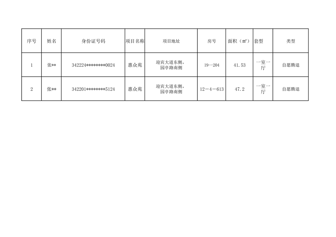 关于2户保障性住房自愿腾退的公告