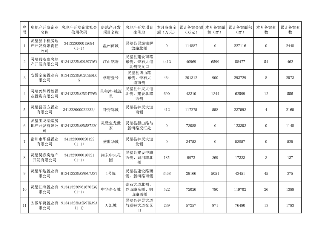 灵璧县住建局2025年7月份商品房备案信息