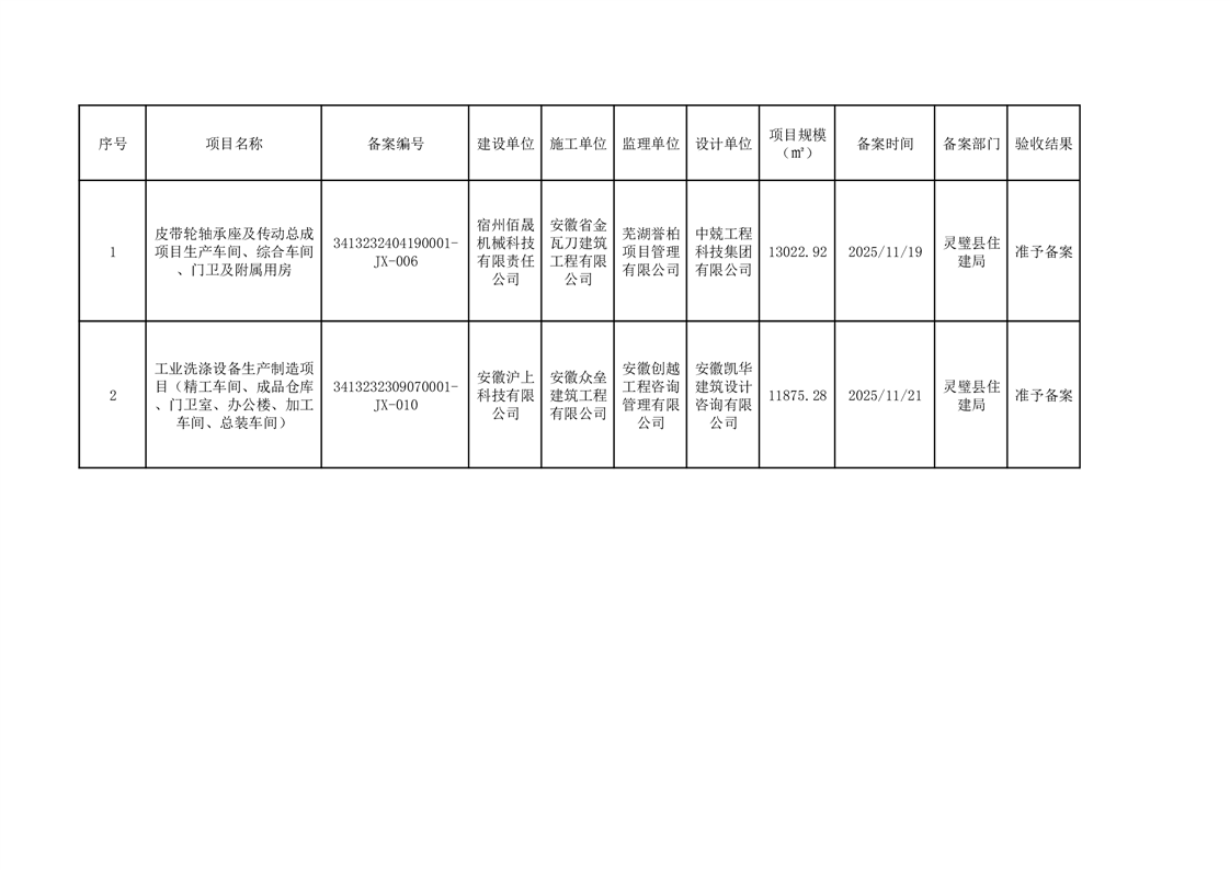 灵璧县住建局2025年11月份竣工备案信息