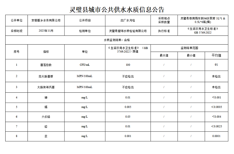 2025年11月出厂水水质(月检43项)