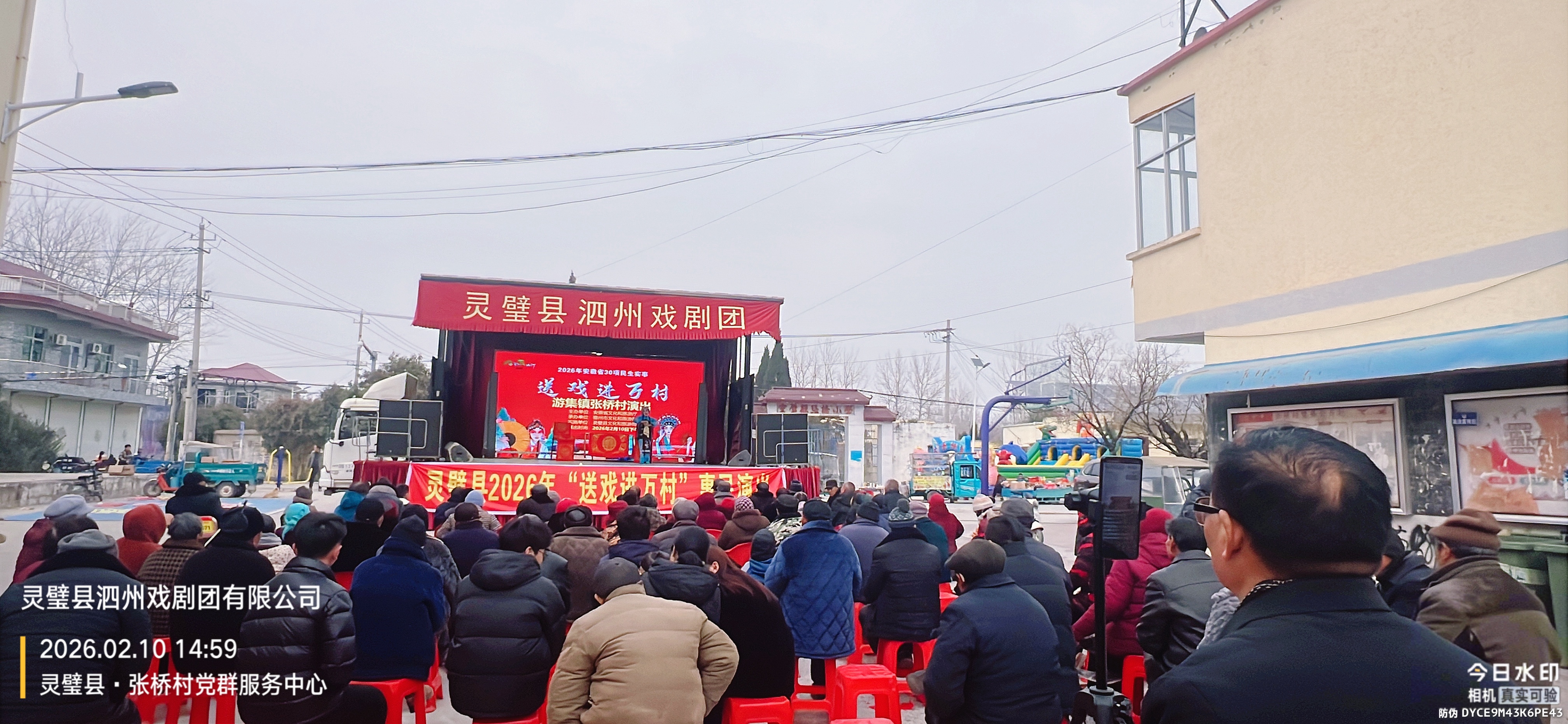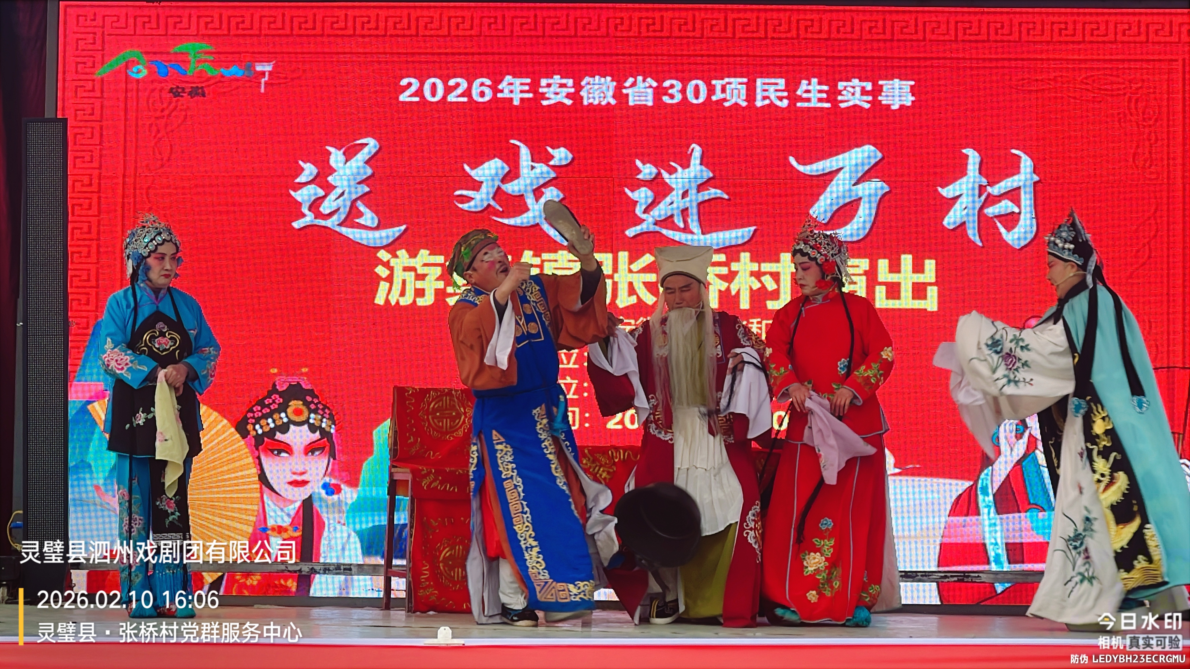 2月10日,灵璧县“送戏进万村”活动走进游集镇张桥村,泗州戏剧团的演员们为村民们献上了一出感人至深的古装大戏《墙头记》,用传统艺术传递孝道文化,让乡亲们在家门口过足了“戏瘾”。