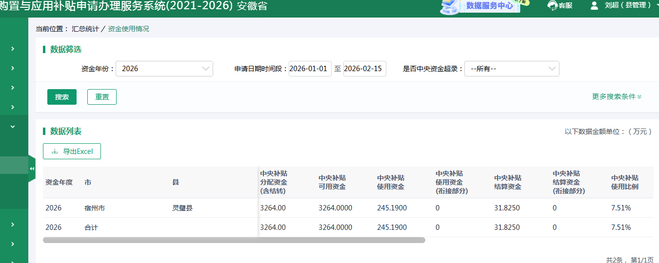 灵璧县农业机械化管理服务中心2026年2月15日农机购置补贴资金使用进度