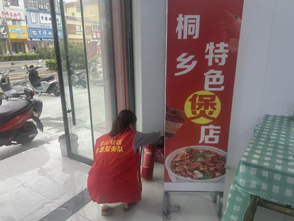 社区工作人员身穿红马甲深入超市、餐馆、便利店等地走访排查,逐一排查商户内存在的安全隐患。对辖区的沿街商铺进行信息登记,完善辖区生产经营台账;针对商铺灭火器材是否过期、灭火器材是否配备齐全符合标准规定、是否存在飞线充电及电线是否存在悬吊等现象进行检查并登记相关信息,以便定期巡查,进一步消除辖区安全隐患风险;对不合格的场所要求相关负责人限时整改,切实把安全生产大检查工作落实到位。