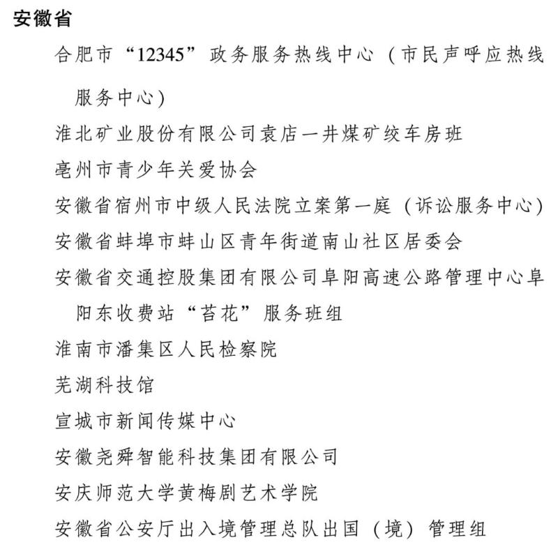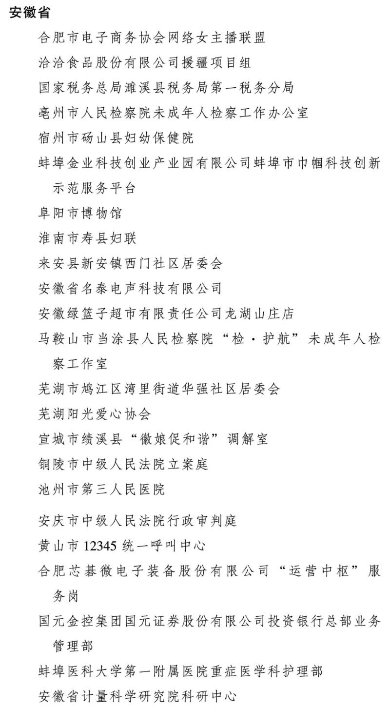 全国巾帼文明岗名单(安徽部分)