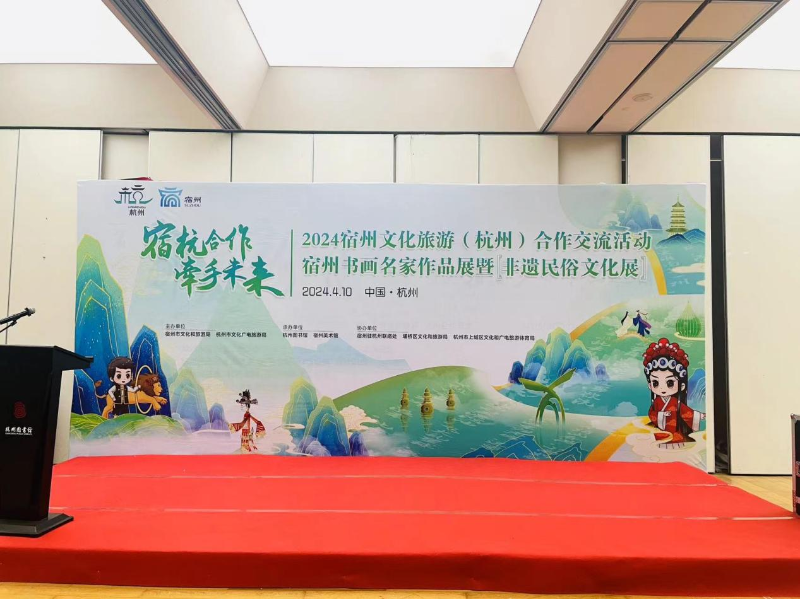 4月10日,灵璧县文化和旅游局党组书记、局长崔华一行赴杭州参加“宿杭合作 牵手未来”合作交流活动。活动现场分为书画展暨非遗民俗文化展示会和“春游江淮 请您来宿州(杭州)”推介会。