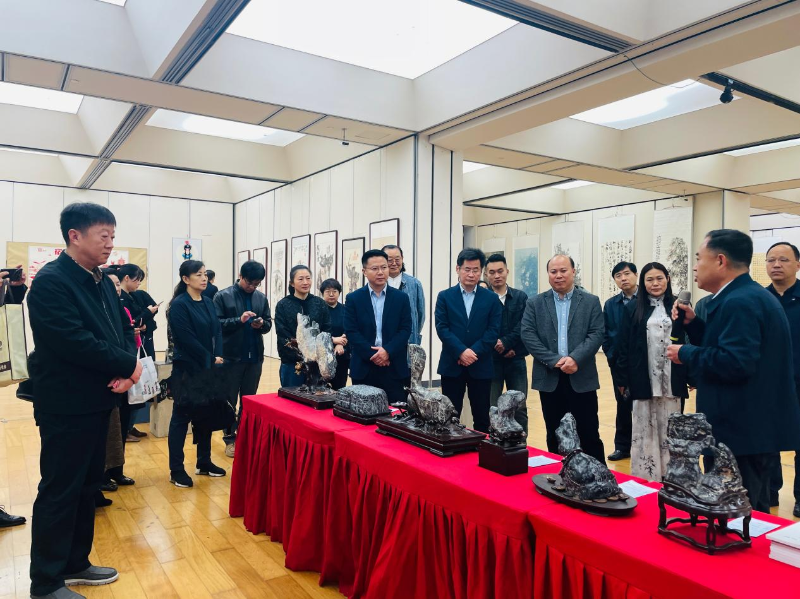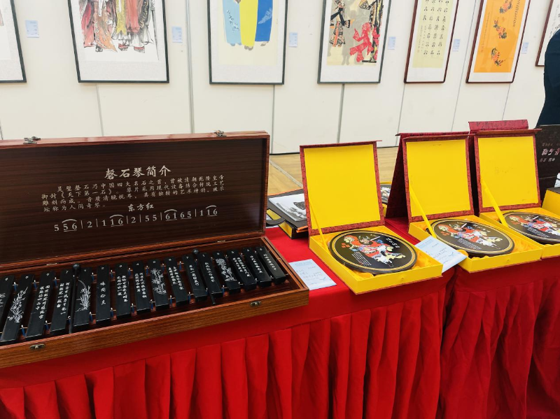 非遗文化展示会的现场,有宿州市各县区丰富的书画作品和特色商品展示,其中灵璧奇石、钟馗画和磬石琴引来场馆内众多观众驻足。