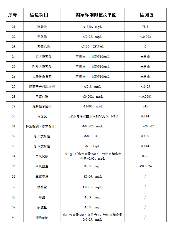 灵璧县2022年11月出厂水水质(42项)