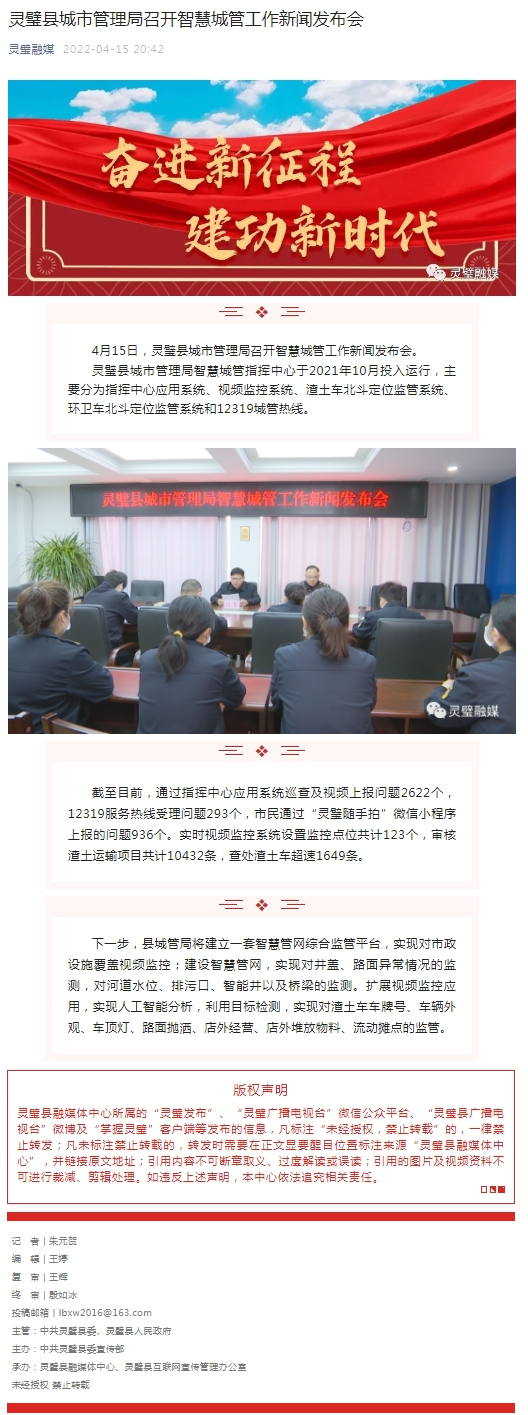 欢迎参加灵璧县城市管理局召开的智慧城管工作新闻发布会,现就相关情况介绍如下: