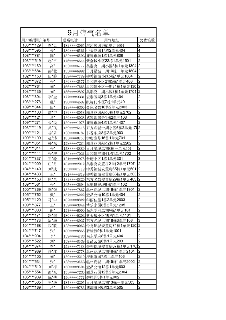 3、欠费停气:欠费达2个月的用户,通知后仍不交费的会被停气;