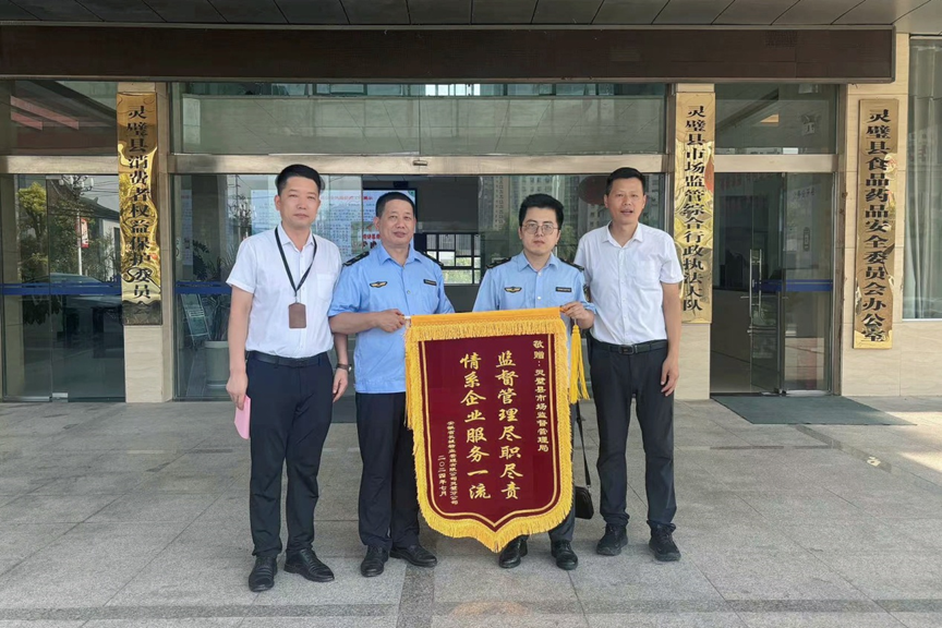 7月24日,安徽省长城物业管理有限公司灵璧分公司负责人将一面印有“监督管理尽职责 情系企业服务一流”字样的锦旗和一封感谢信送到了灵璧县市场监督管理局,对我局热情、高效服务企业的行为表示衷心感谢和高度赞扬。