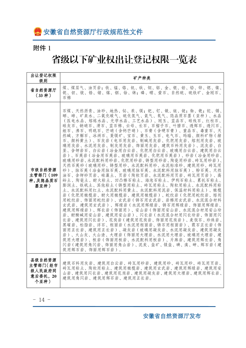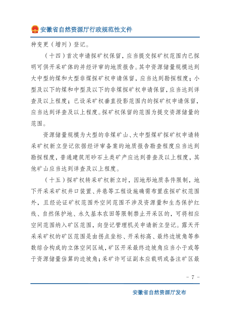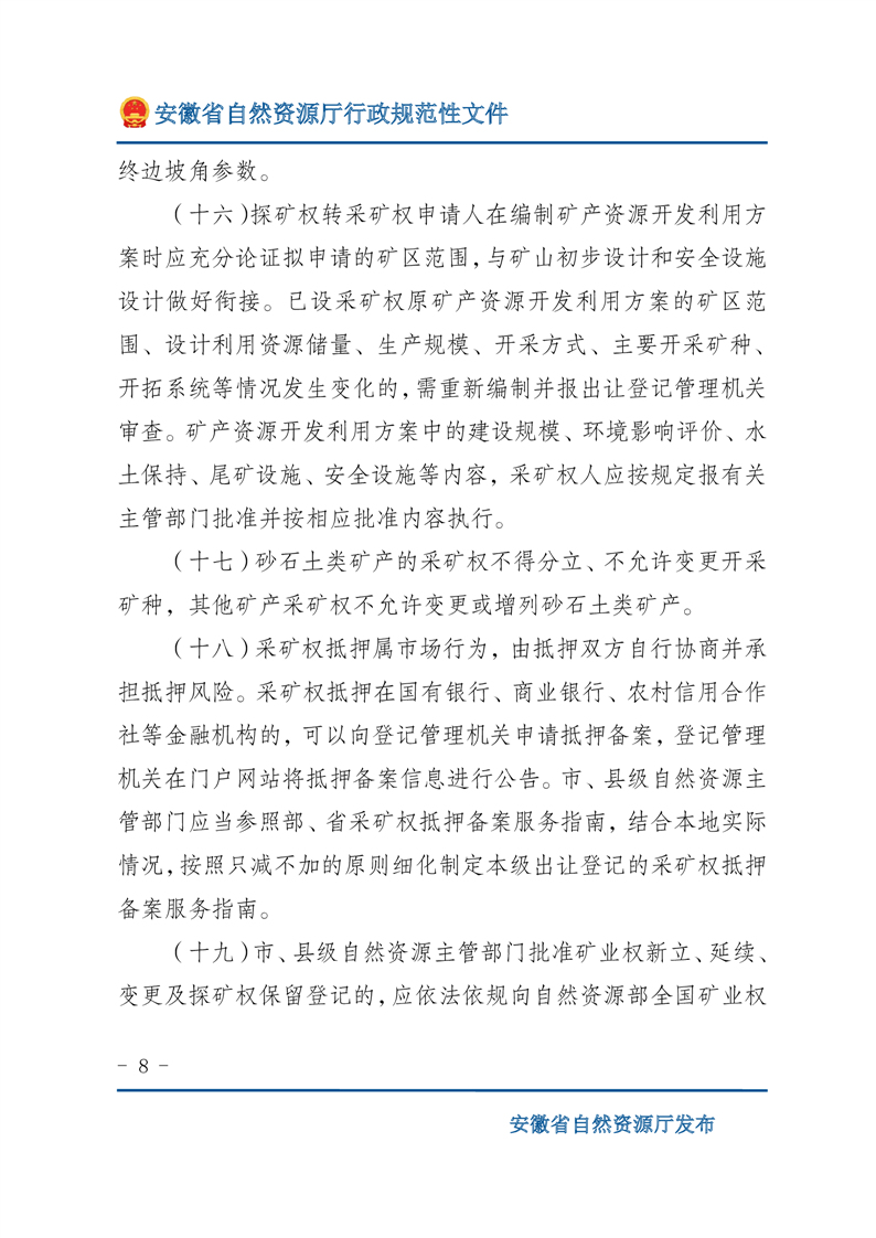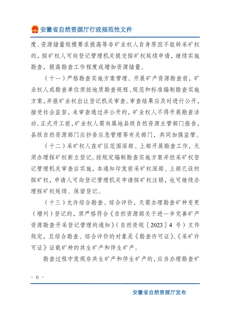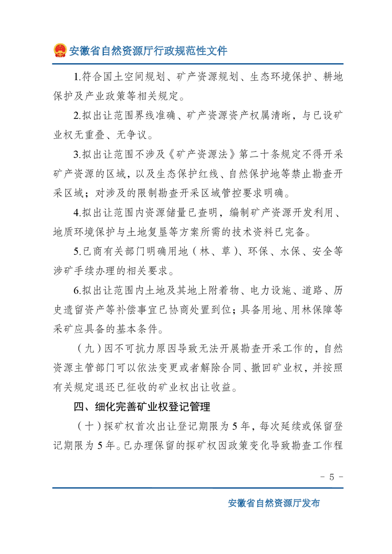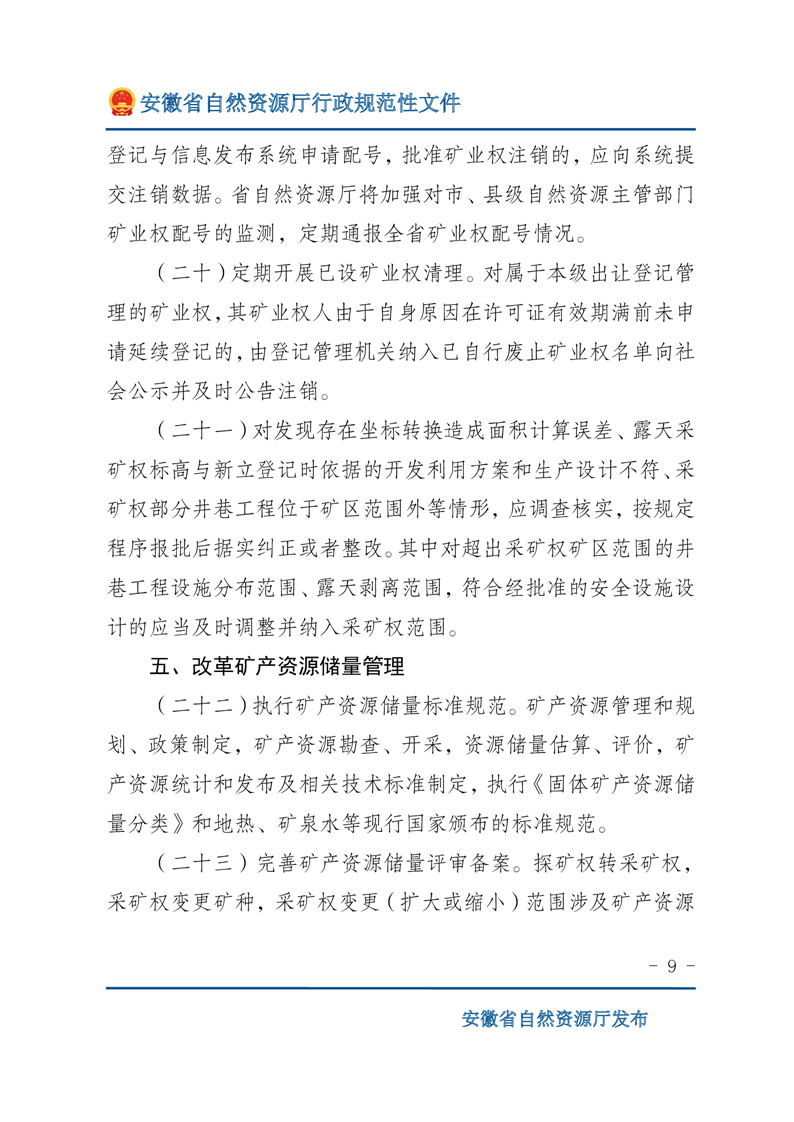 安徽省自然资源厅关于深化矿产资源管理改革进一步规范矿产资源勘查开采登记的通知 |