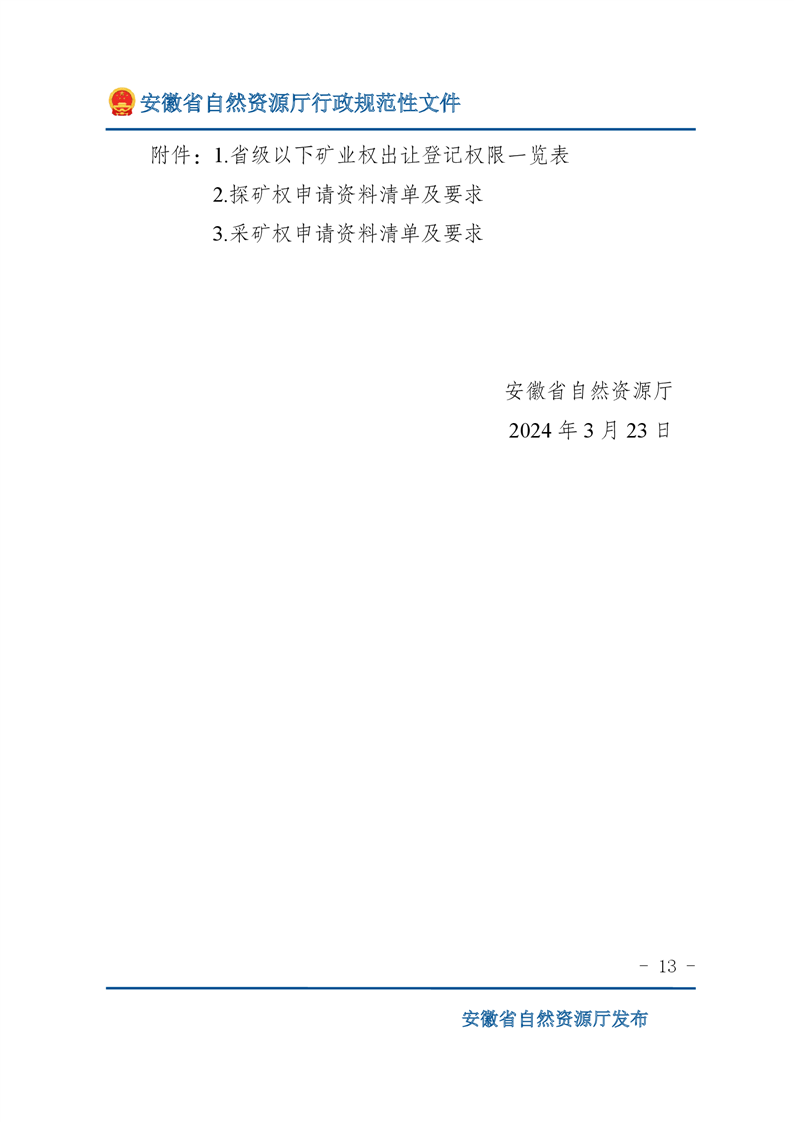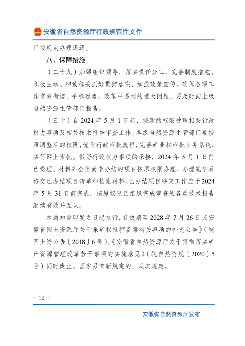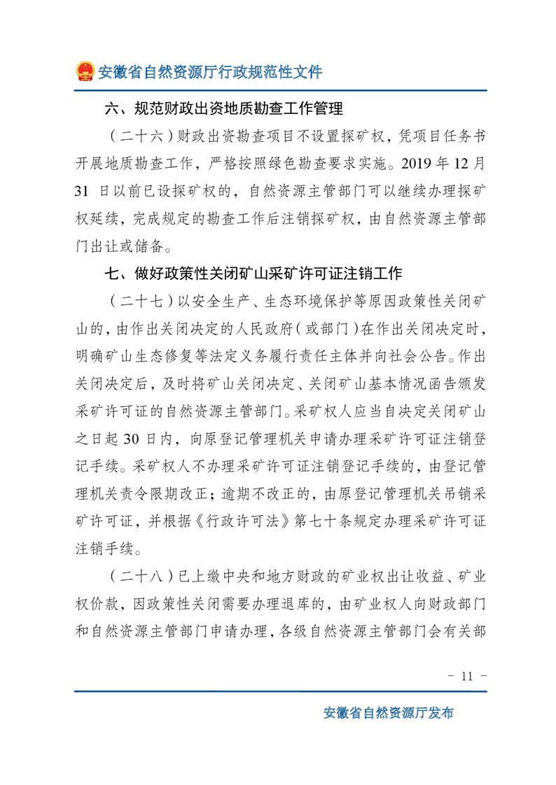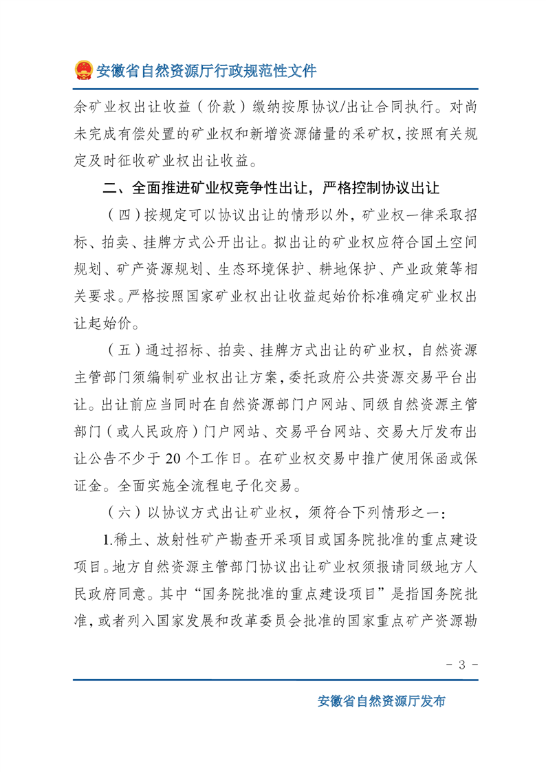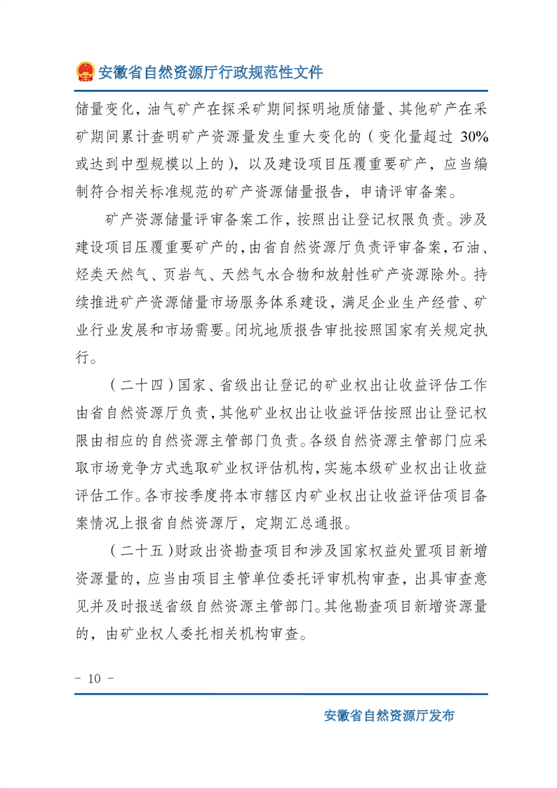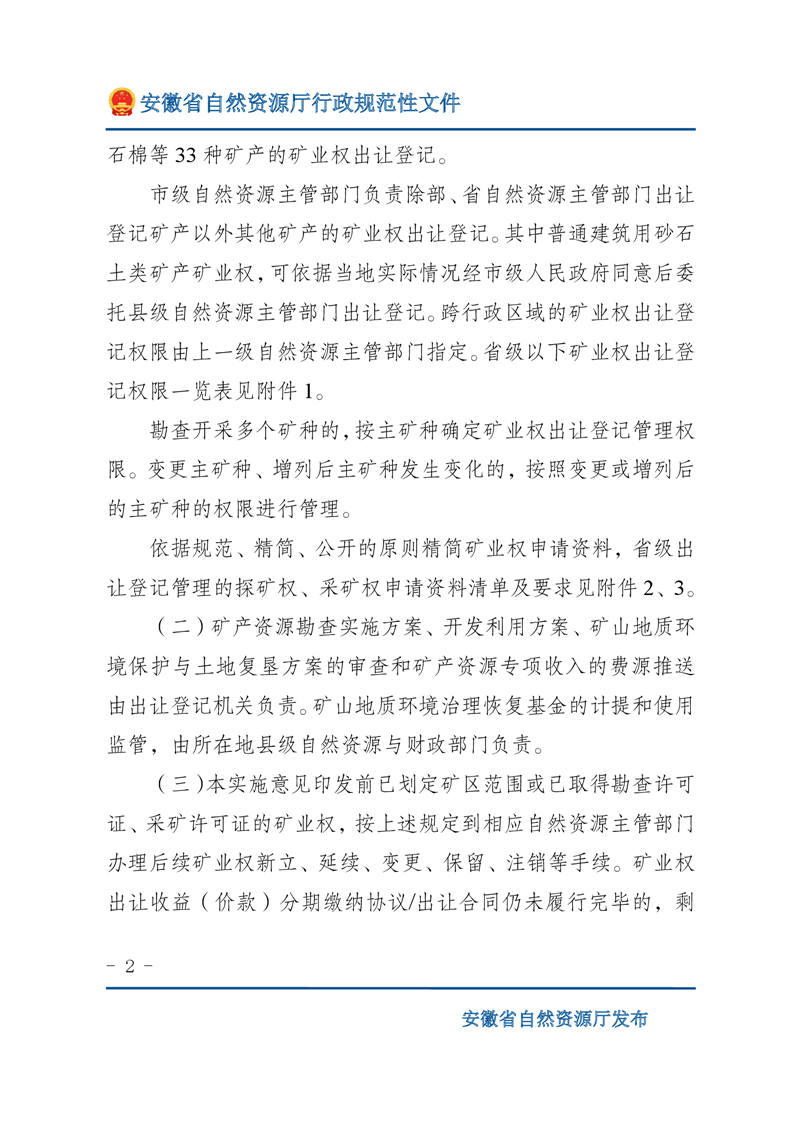 安徽省自然资源厅关于深化矿产资源管理改革进一步规范矿产资源勘查开采登记的通知 |