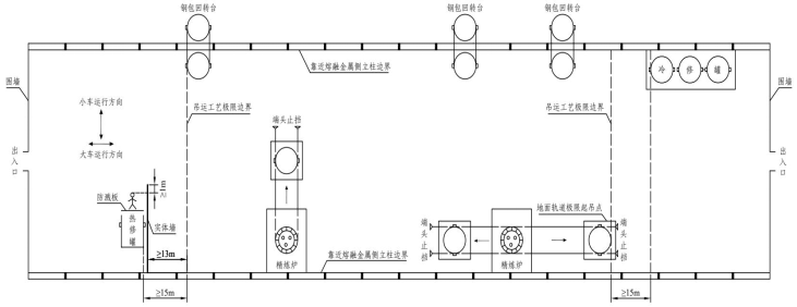 图4-4 钢水罐冷(热)修工位和铁水罐冷修工位示意图