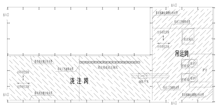 注:面向钢水、液渣吊运侧包括正对连铸跨和面向钢水罐行走路线两个方向。