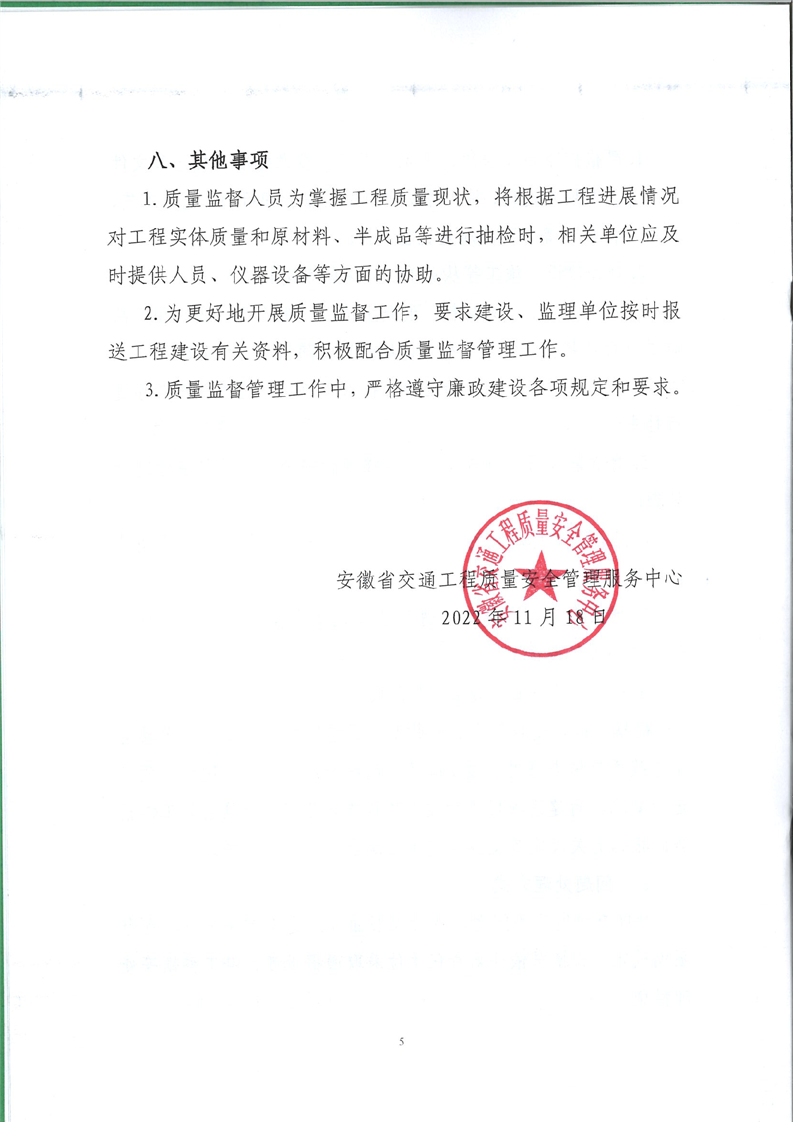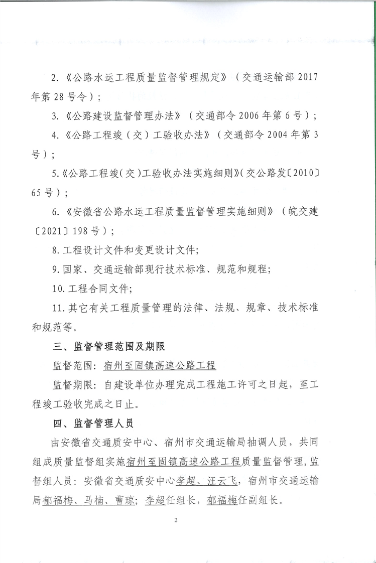 宿州至固镇高速公路项目公路水运工程质量监督管理受理通知书