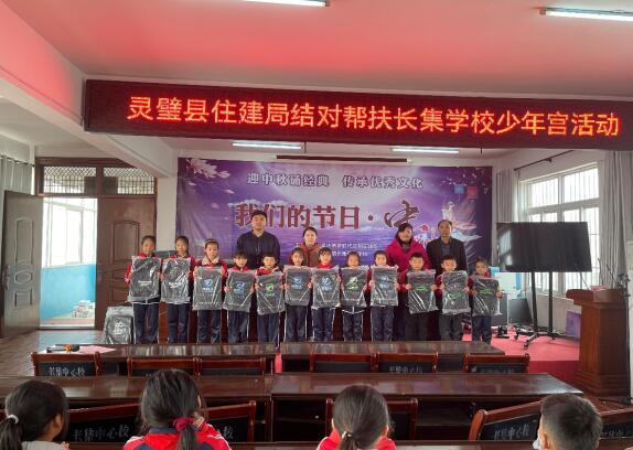 此次县住建局为校少年宫110名学生捐赠了价值12000余元的书包、文具盒、本子等学习用品,用于激励学校师生不断奋进。活动中,灵璧县住建局党委办负责人赵燕同志说:关爱学生,关注学校发展是全社会共同的责任。这次对长集中心小学少年宫帮扶只是住建局奉献了一份微薄之力。以后我们会继续开展爱心帮扶活动,为社会贡献力量。并寄语学生好好学习,做有远大理想的新时代好少年。
